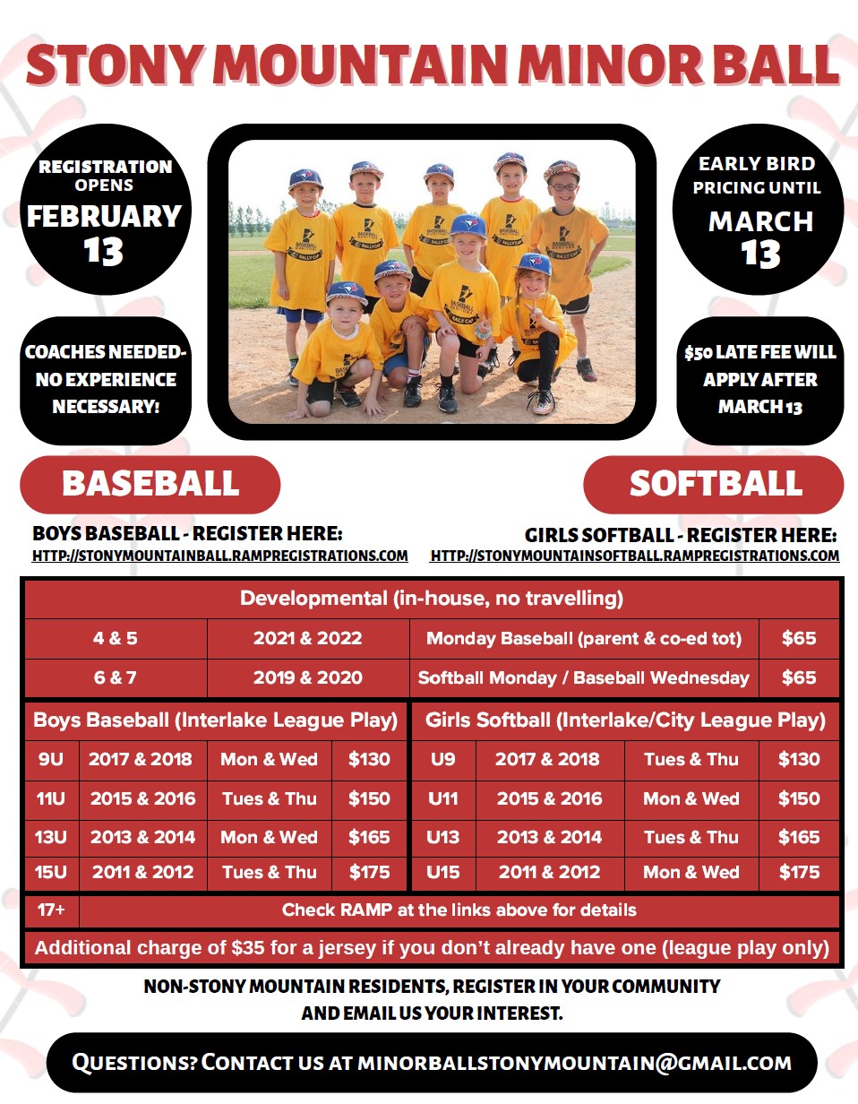 Ice times are at Stony Mountain Community Centre on Thursday evenings. Equipment required.